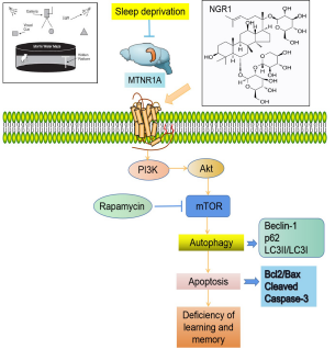 睡眠剥夺或睡眠缺失可引起中枢海马神经元损伤从而诱发学习和记忆障碍。科研技术中心曹寅副研究员课题组一直致力于中药防治睡眠剥夺诱发的神经损伤及相关机制研究,近期研究发现中药三七中的特色单体成分三七皂苷R1可以通过调控褪黑素受体1A介导的PI3K/Akt/mTOR信号通路抑制睡眠剥夺诱发的海马神经元的过度自噬从而改善学习记忆。该研究成果以“Notoginsenoside R1 reverse abnormal autophagy in hippocampal neuron through Melatonin receptor 1A of mice with sleep deprivation”为题发表在国际期刊Frontiers in Pharmacoloy (JCR一区,IF=5.81)上。