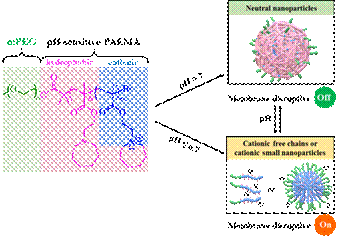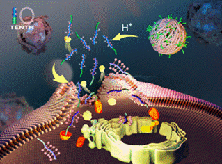 图1. PEG-PAEMA的化学结构、pH响应机制和细胞膜破坏机理图