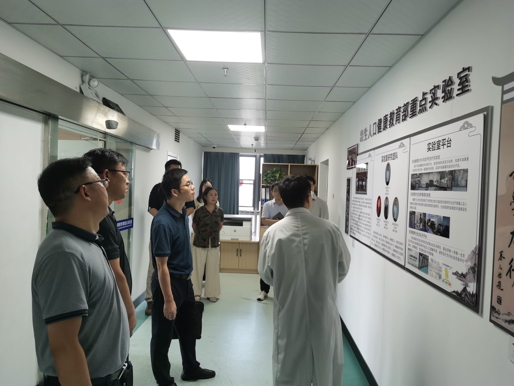 调研组一行实地走访参观了出生人口健康教育部重点实验室和科研实验中心。(徐亚/文 曹寅/图 蔡荣林/审核)