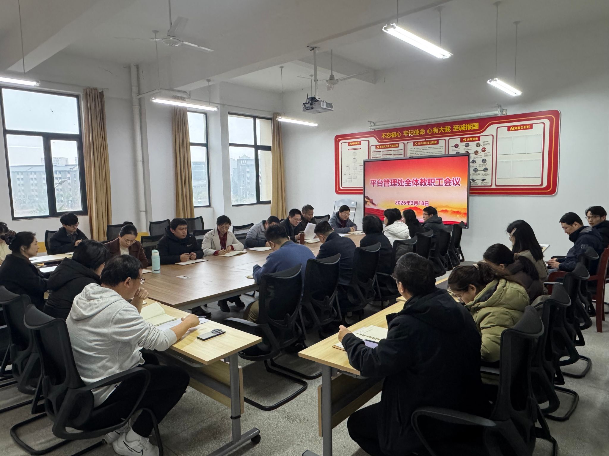 3月18日上午,平台管理处全体教职工在至精楼B228会议室召开全体教职工会议暨2026年度工作部署会。部门领导班子及全体职工参加会议。