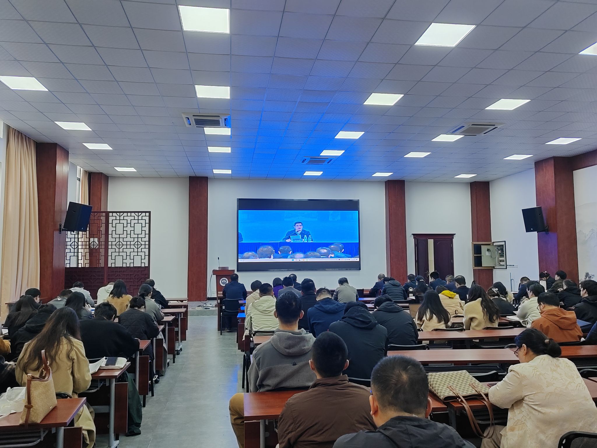根据教育部要求及安徽省教育厅具体部署,4月23日上午,学校组织参加教育部2026年高校实验室安全工作培训,学校党委常委、副校长聂久胜和平台管理处分管负责同志赴省教育厅现场参会,平台管理处、教务处、总务处、国有资产管理处、保卫处负责人,各二级单位实验室安全分管负责同志及实验室安全管理人员、部分教师代表100余人在宅仁堂报告厅参加线上视频会议。